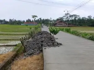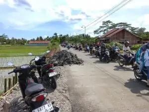 “Pengurugan badan jalan ini juga bisa digunakan untuk parkir sepeda motor para petani. Selama ini, mereka sering kesulitan mencari tempat parkir yang aman saat hendak turun ke sawah. Dengan adanya fasilitas ini, diharapkan aktivitas pertanian bisa berjalan lebih lancar,” tambah Ngadiman.
